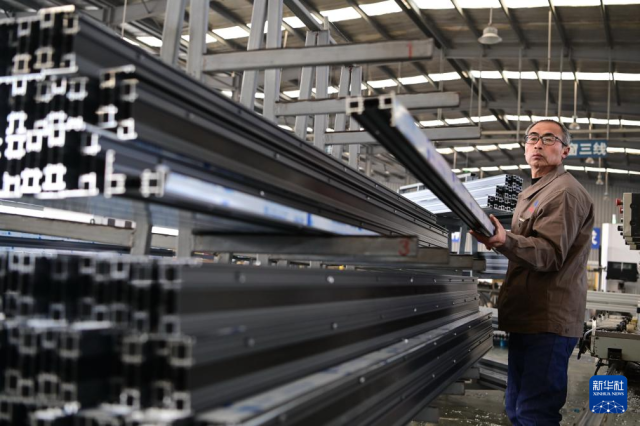 1月5日,位于河南省沁阳市的河南兴发幕墙门窗有限公司工人在生产铝合金门窗。