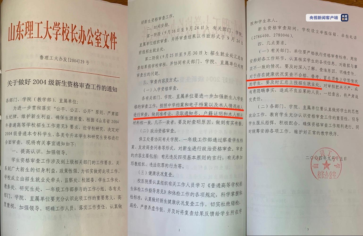 校方介绍,以上材料是由学生的辅导员老师进行初审把关,发现可疑情况须上报招生就业处复审。陈某某为何能通过入学资格审查,目前正在调查中。(总台央视记者 李秉禅 孙川)