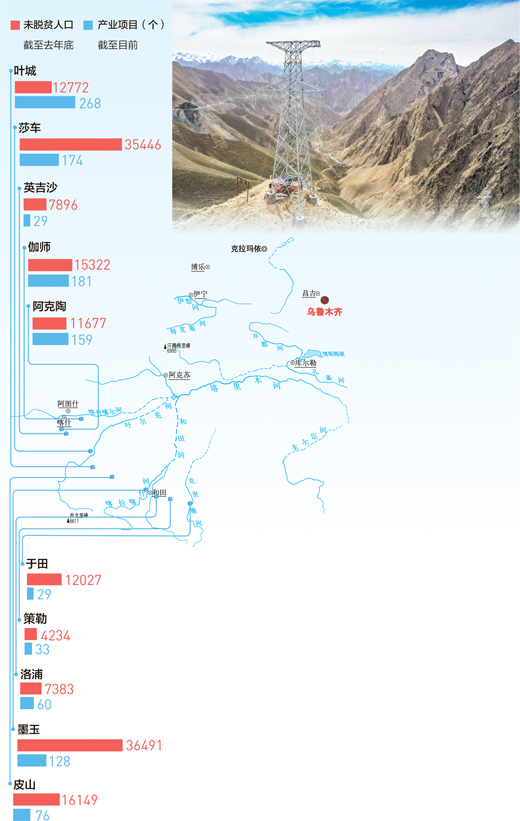 到去年底,新疆维吾尔自治区还有10个贫困县未摘帽,均位于喀什地区、和田地区和克孜勒苏柯尔克孜自治州,这里是“三区三州”深度贫困地区之一。在脱贫攻坚战最后关头,要实现全区剩余16.58万贫困人口脱贫、559个贫困村退出、10个贫困县摘帽。