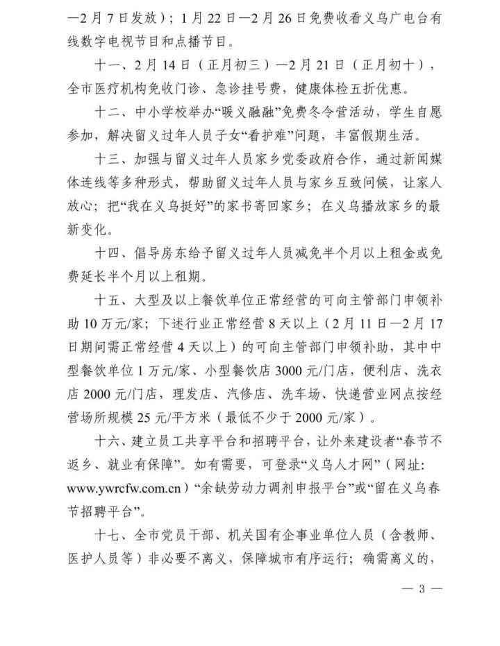 浙江义乌:倡导房东给留义过年人员减免半个月以上房租
