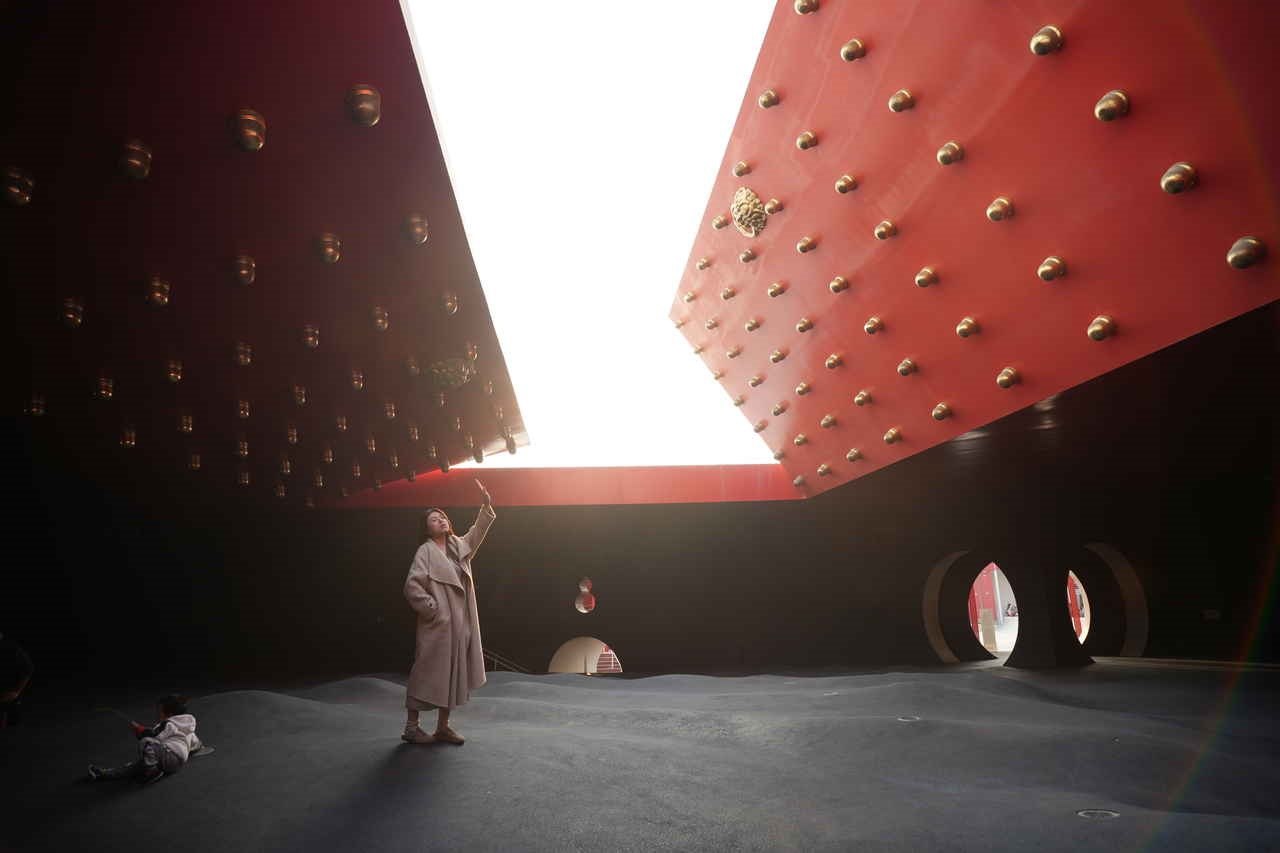 从空中俯瞰,幻城以棋盘格局铺展,廊道迂回,暗合中式园林“曲径通幽”的韵致。108个情景空间如珠玉散落,皆是《红楼梦》精神内核的当代转译:“无常”剧场中,黑白半亭互为镜像,隐喻命运的对立与无常;纯白圆形剧场中央孤椅静立,呼应“白茫茫大地真干净”的苍茫意境……