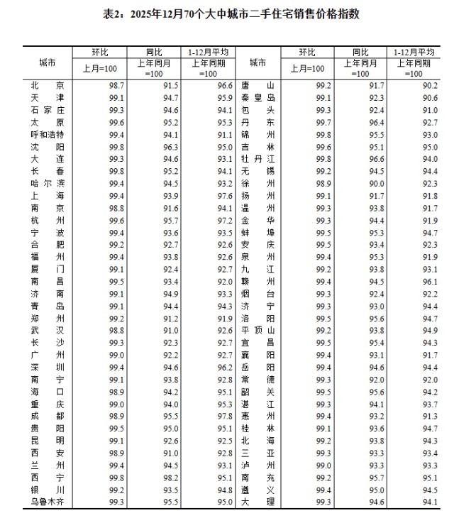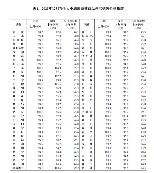 国家统计局城市司首席统计师王中华解读称,2025年12月份,70个大中城市商品住宅销售价格环比总体下降、同比降幅扩大。