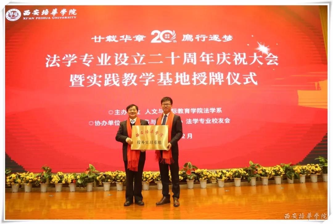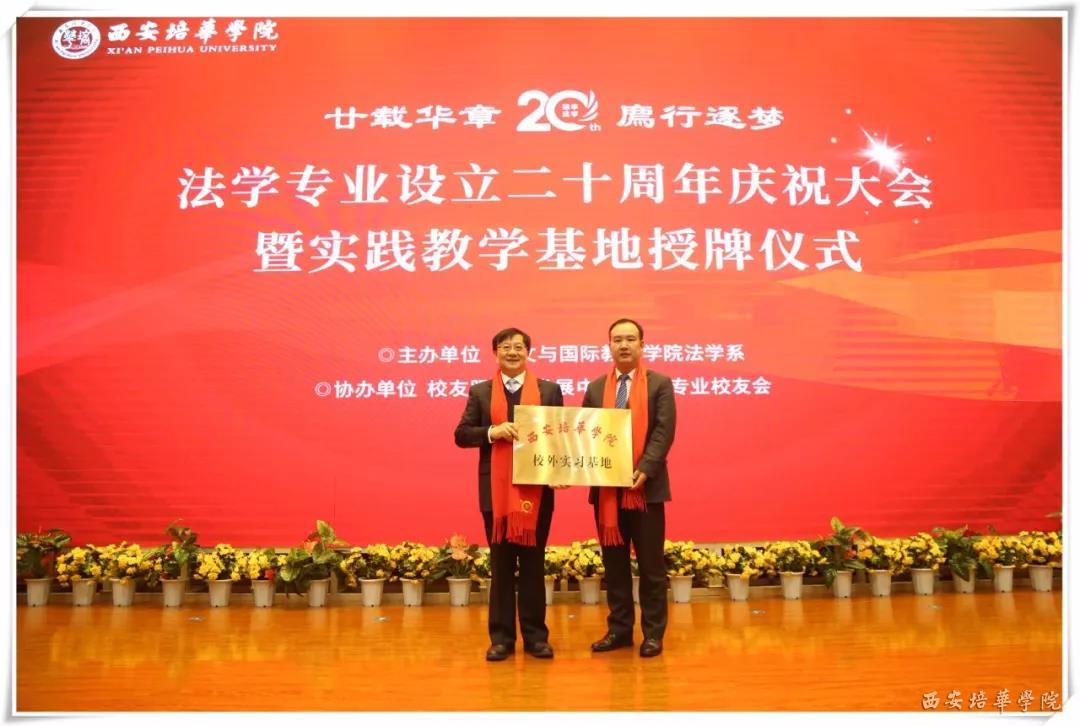 二十载春秋,法学专业的发展离不开众多知名法学专家、教授们以及各个实践教学基地的支持与帮助。值此庆祝法学专业设立20周年之际,法学系对各位专家、教授、合作单位一直以来对西安培华学院法学专业的帮助与鼓励充满感激之情,并与陕西浩公律师事务所、陕西至正律师事务所和北京市盈科(西安)律师事务所建立了合作关系。