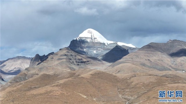无人机视角下的冈仁波齐峰。新华网发