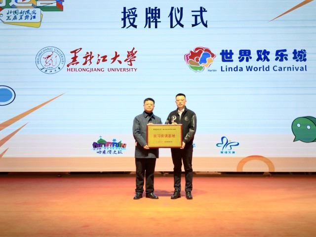活动现场还举行了实践基地授牌仪式和战略合作协议签约仪式,黑龙江大学新闻传播学院为世界欢乐城授实习实训基地牌,世界欢乐城与哈尔滨鑫成文化传播有限公司签订战略合作协议,为未来校企协同、文旅传播搭建了更坚实的平台。