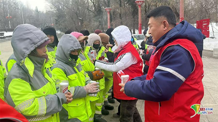 中国青年网讯(记者 夏烯然)为扎实做好新就业群体关心关爱工作,1月26日腊八节当天,哈尔滨市平房区委社会工作部联合区城管局、区市场局、新疆街道办事处,统筹四叶草青年志愿服务中心、北大荒食品集团哈尔滨豆制品有限公司等单位志愿者,开展“浓情腊八暖人心 关爱户外‘新’力量”志愿服务活动,为城市户外守护者送上节日关怀。