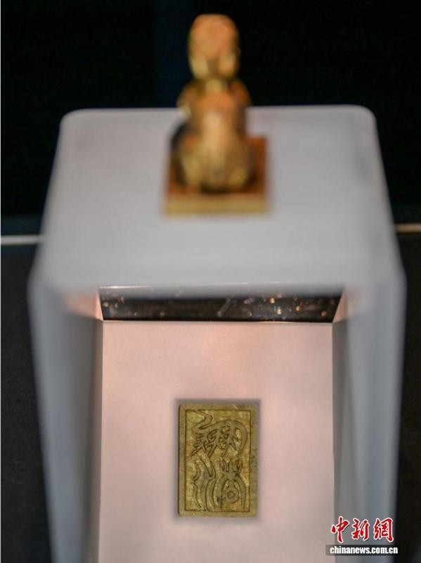 中新社记者 刘忠俊 摄 博物馆内有“凤渚”二字的麒麟金印。