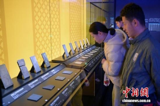 中新社记者 刘忠俊 摄 江口沉银遗址出水的银册吸引参观者。