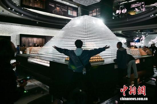 中新社记者 刘忠俊 摄 3米高的巨大“银锭”工艺品吸引参观者驻足,或拍照留念。