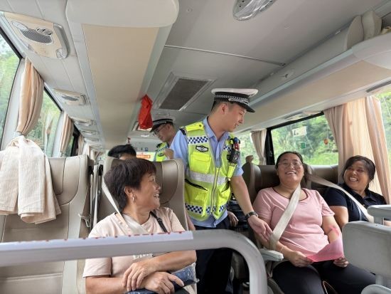 “山区路弯,请谨慎驾驶”“请全程系好安全带”,在维护秩序的同时,执勤民警也是一线宣传员。大队结合“一盔一带”安全守护行动,组织警力深入景区、民宿、客运站,通过发放资料、现场讲解等方式,面向游客与驾驶员精准普及旅游出行安全知识。此外,充分借助新媒体平台,实时发布路况信息与交通管制措施,引导游客错峰出行、合理规划路线,从源头上提升整体安全防范效能。