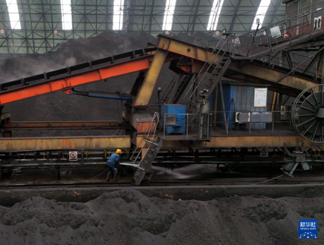 10月20日,在河南省南阳热电公司煤场供应处,工人在清洗设备(无人机照片)。