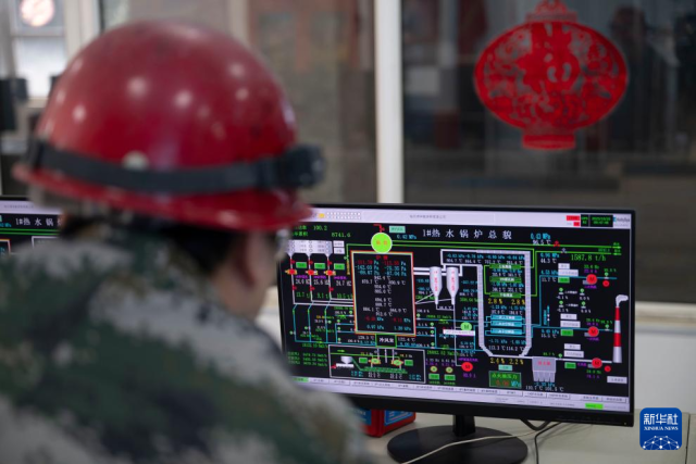 10月20日,在哈尔滨市华能集中供热有限公司锅炉控制室,工作人员在监测设备锅炉运行情况。