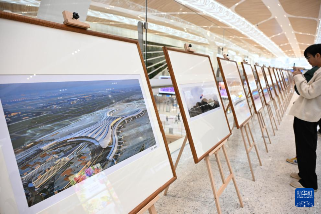 10月30日,在广州白云机场T3航站楼内,市民在参观摄影展。