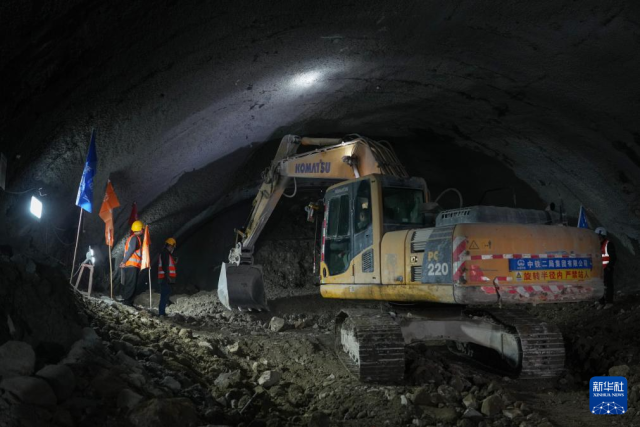 12月3日,中铁二局建设者在通甬高铁相岙隧道内作业。