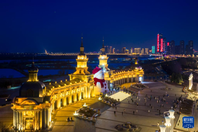 这是12月15日在哈尔滨市群力音乐公园拍摄的大雪人(无人机照片)。
