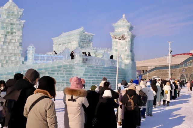 园区特设主宾省、主宾市景观群,以及文化融合区域、大国重器冰建展区,游客们的惊叹声连连。