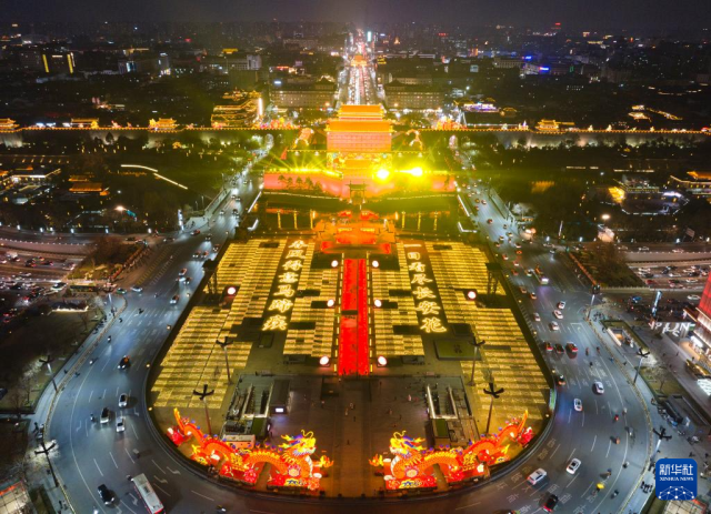 1月4日拍摄的西安城墙南门瓮城“长安灯会”景色(无人机照片)。
