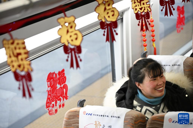 2月10日,在陕务工人员乘坐D1925次免费爱心专列返乡。