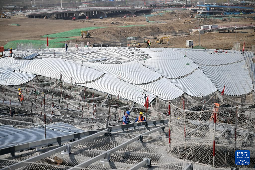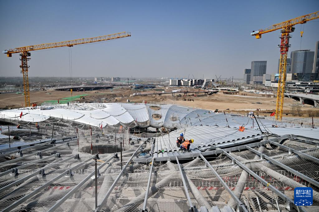 雄安新区启动区城市文化广场项目建设现场(4月2日摄)。