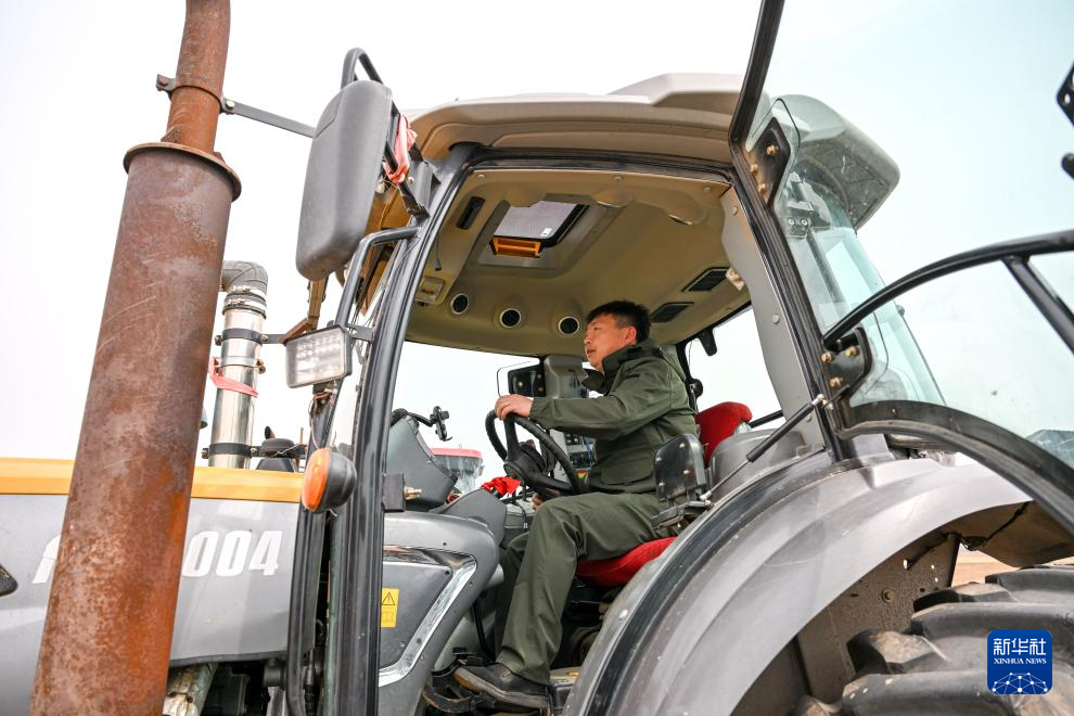 4月19日,在通辽市科尔沁左翼后旗甘旗卡镇,农机手驾驶农机翻地。