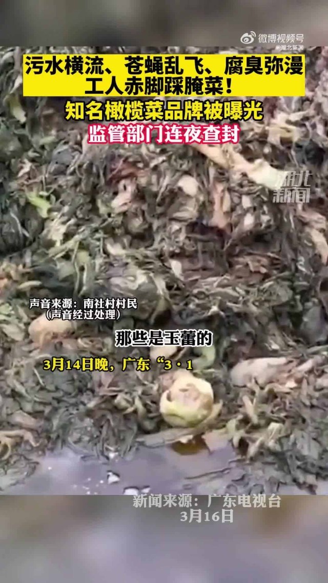 触目惊心!知名品牌橄榄菜竟用腐烂原材料制作,监管部门连夜查封