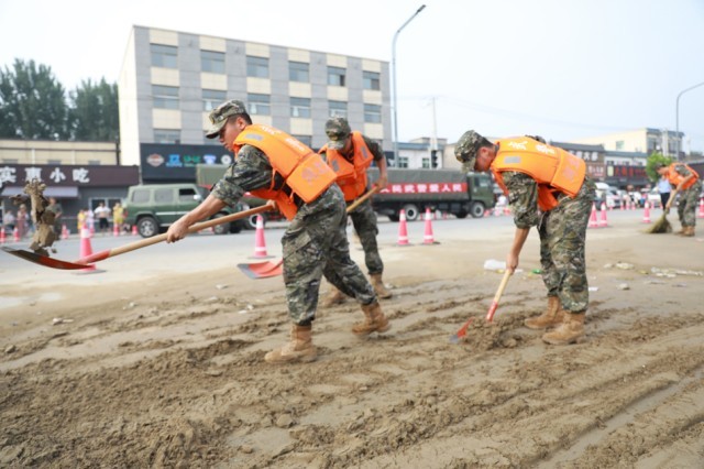 8月4日,武警官兵正在清淤。机动支队 江腾 摄