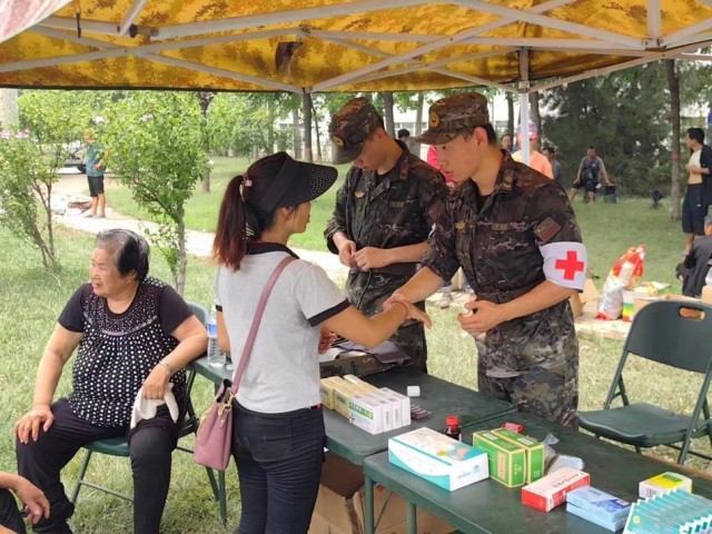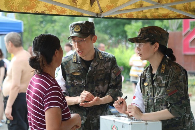 8月4日,军医正在为群众治疗病症。武警河北总队 王红强 摄