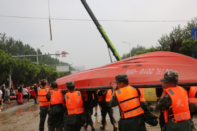 8月4日,武警河北总队官兵在河北涿州继续展开抢险救援,累计为受困群众运输物资1.6吨,搜救转移受困群众365名,已累计解救转移群众2190余人。抽调总队医院卫勤力量组成救援医疗队,派出医疗小组到救援一线巡诊,在救援交接处搭建医疗帐篷,开设便民医疗点,为救援人员和群众进行诊疗,分发药品,开展卫生防疫宣传,先后诊疗500余人次。