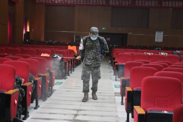 8月4日,医院卫勤军医消杀官兵休息场所。武警河北总队医院 杨雪乾 摄