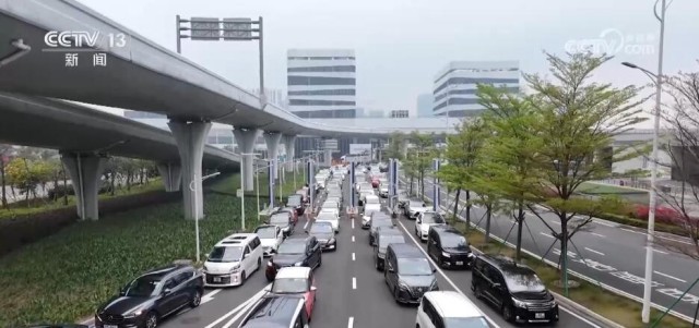 同样,等待入境的车辆也排起了长队,其中以私家车搭载全家出行为主。为加快查验速度,多个部门加派人员为司乘指引路线。同时,口岸还为长幼旅客、行动不便人士提供通行便利,保障口岸通关安全顺畅。