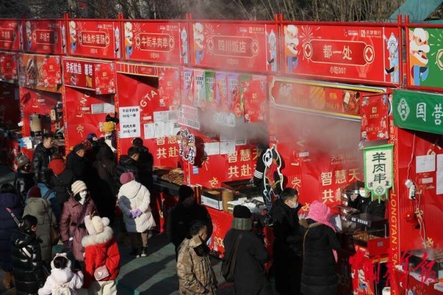 本届地坛与龙潭庙会还通过线上平台联合招募“年味美食”与“年礼好物”。地坛庙会以挑动舌尖的“年味大餐”打造“最解乡愁的年味美食大全”,东来顺、锦芳、六必居等多家北京老字号携手河北、四川、江西、青海、内蒙古、山西等地的特色美食惊艳亮相,让游客们在庙会现场沉浸式探索中国丰富多样的饮食文化。聚焦“都会烟火”味道的龙潭庙会不仅集结了全聚德、门框卤煮、丰泽园等传统北京味道,还囊括了天坛福饮、天桥茶汤等新派北京小吃,新旧美食的碰撞,让现场无处不散发着地道的京城烟火气息。中青报·中青网记者 李建泉/摄