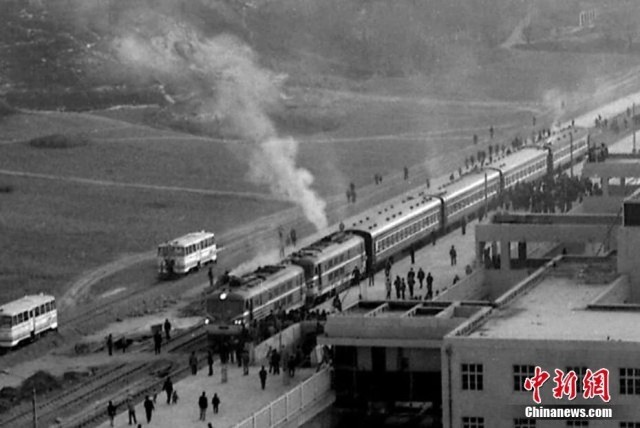 1991年12月26日,西延铁路建成通车,图为首辆列车到达延安火车站。西安铁路局 供图