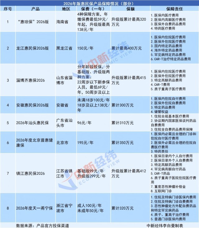 公开信息显示,自9月份以来已有“惠琼保”2026版(海南省)、“龙江惠民保2026版”(黑龙江省)、燕赵健康保(原冀惠保,河北省)等多款产品上线,并均在此前版本上进行升级。