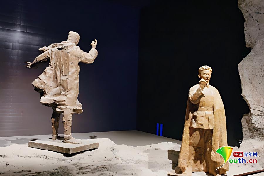 《黄河大合唱》曲作者冼星海(左)与词作者光未然(右)雕像。李婷 摄