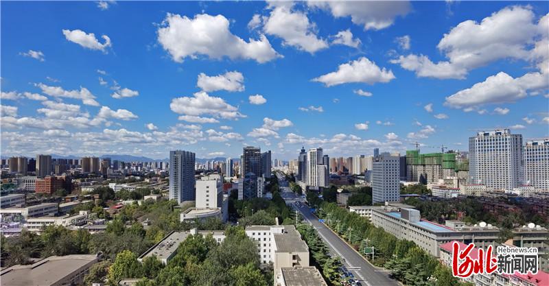 蓝天白云下的石家庄市。(资料图)河北日报记者 田 明摄