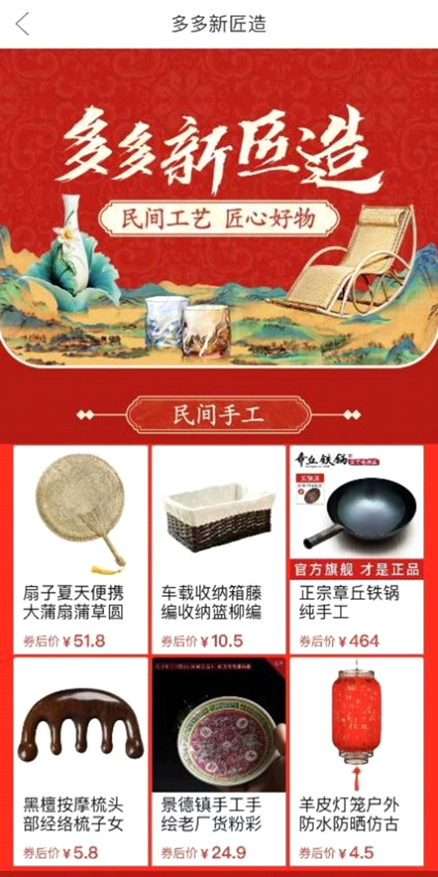 “多多新匠造”的项目负责人表示,“多多新匠造”将通过流量扶持、品牌打造、电商培训等一揽子措施,重点扶植像“章丘铁锅”这样的乡村好物实力“出圈”,带动村民创富增收。