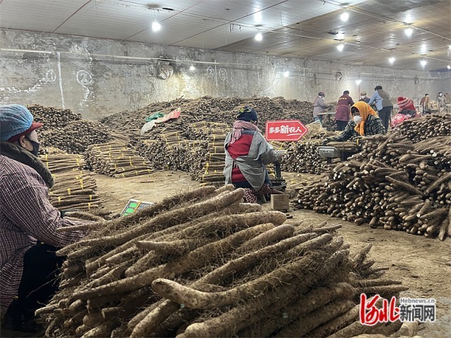 通过线上销售,仅“淮药之家”一家公司就带动了3000多户种植户,种植麻山药1.3万余亩。李宁介绍,一亩麻山药的产量是6000斤左右,其中符合公司选品要求的货品能占到约2000斤,而公司生意好时,一天的销量就能达到20万斤。“比如周边的庞佐乡,种植户把货源集体供给我们公司,不用四处找销路,省时省力,回本快,利润高。”李宁说,由于公司可以对种植户进行兜底收购,农户的种植信心也更足了。