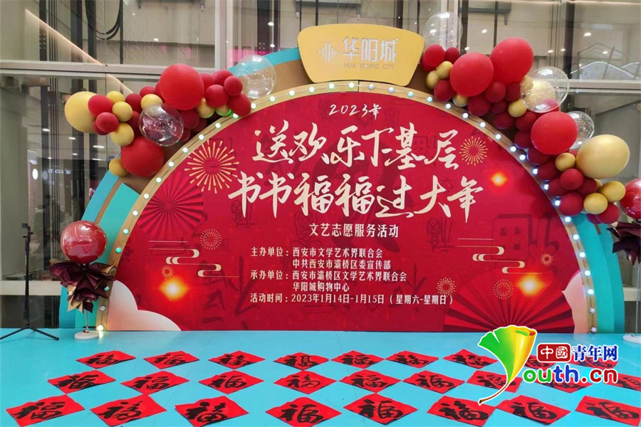 中国青年网西安1月18日电 近日,为营造浓厚的节日氛围,中共西安市灞桥区委宣传部和文联共同开展墨香情浓递万福——2023年灞桥区万“福”春联进万家活动。活动现场,特别定制的“忒”灞桥“萌萌兔”福袋、红包、福字贴等传统节日用品为群众带去了浓浓的新春祝福。