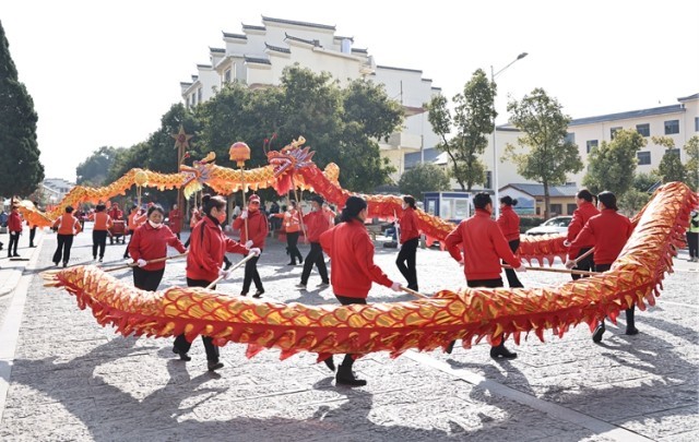 唢呐声声、锣鼓铿锵,花灯跳起来,龙灯舞起来……1月25日上午,江西省瑞金市沙洲坝镇红井步行街上锣鼓喧天,游人如织,热闹非凡。正在这里举行的“千乡万村闹新年”瑞金市客家灯彩踩街汇演活动,用极具特色的民俗表演闹新春,将年味氛围拉满。