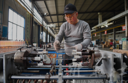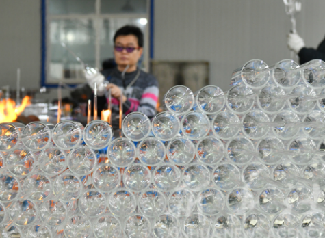 2月11日,河北省河间市一家工艺玻璃制品生产企业工人在车间内加工产品。新华社记者 牟宇 摄