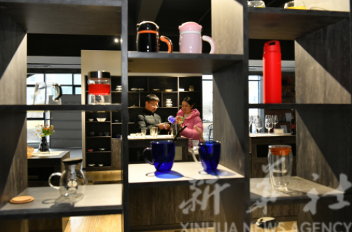 2月11日,客商在河北省河间市一家工艺玻璃制品生产企业展厅内参观。新华社记者 牟宇 摄