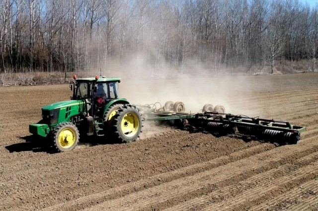 在这个农场有限公司河北庄管理区、北京庄管理区、嘟噜河管理区旱田耕地内机车轰鸣,大马力机车牵引着液压折叠镇压器正在进行镇压保墒作业。管理区技术人员深入一线进行跟踪服务,并要求作业机车严格控制车速,镇压到边、到头、不漏,达到镇压后土地上松下实,平整一致,确保镇压保墒作业高标准进行,为春播工作奠定坚实基础。河北庄管理区副主任刘遵庆告诉记者:“我们管理区通过踏查地号,对土壤化冻至10到15公分的地块进行镇压作业,能够密实土壤,减少水份蒸发,蓄水保墒。争取在一周之内全面完成管理区旱田镇压作业,更好的达到待播状态。”