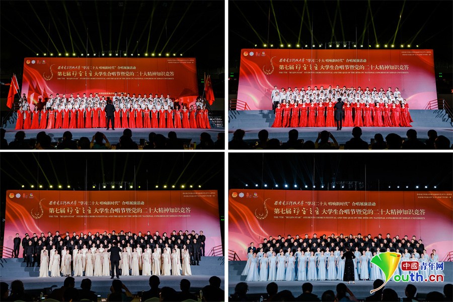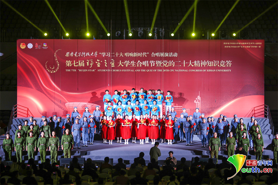 西安电子科技大学第七届“瑞金之星”大学生合唱节暨党的二十大精神知识竞答活动现场。西电团委供图