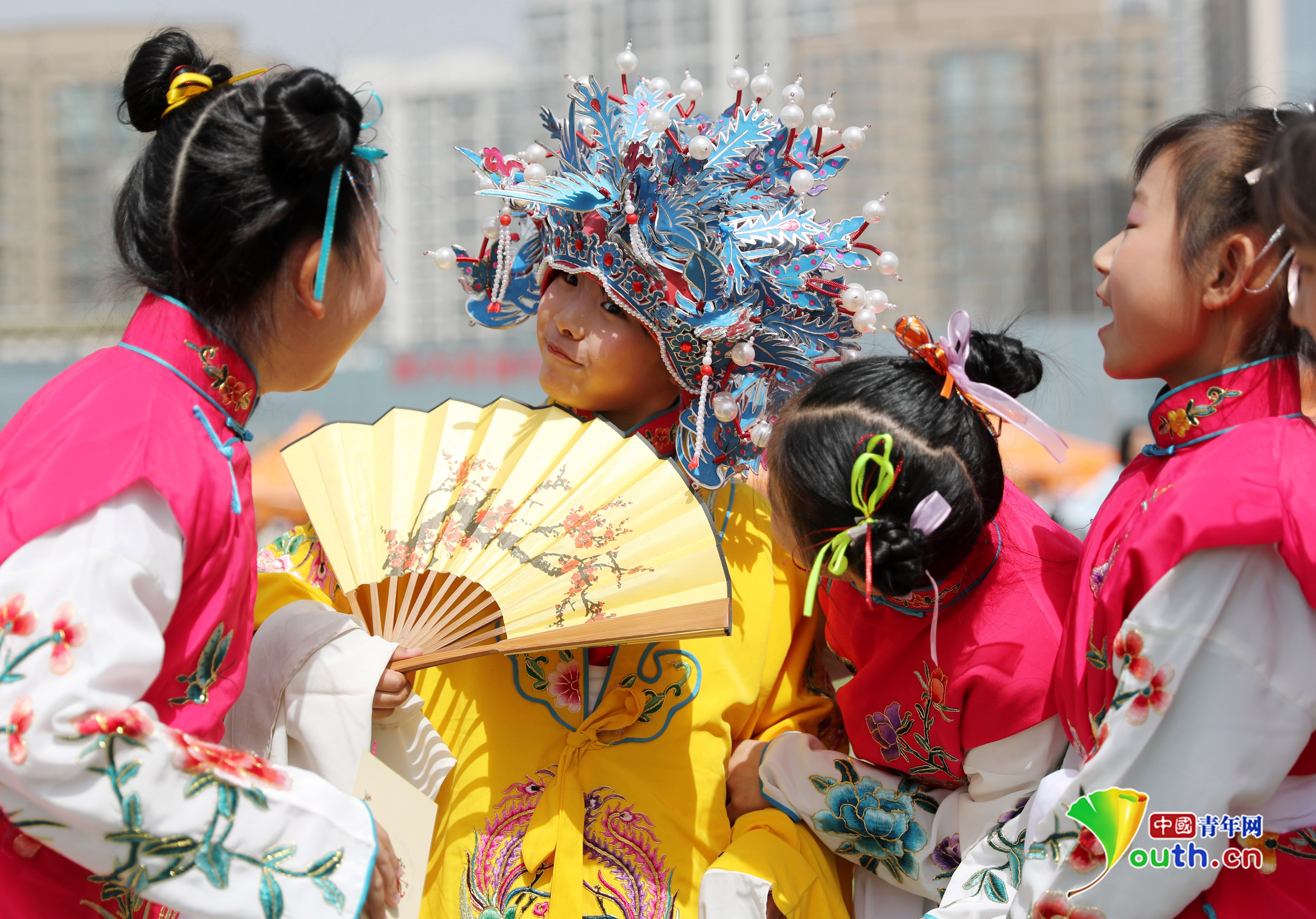 中国青年网讯(记者 郭森 通讯员 张进刚)4月15日,中国石油大学(华东)韵远京剧队的同学们联合青岛西海岸新区珠江路小学的小学生们在大学校园,一起为大学生们上演了一堂生动的戏曲普及课。