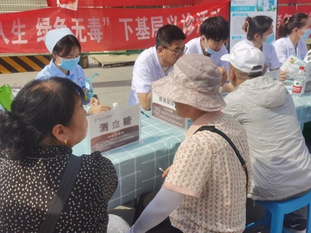 养老集市活动现场,志愿者在义诊车前设立了测血糖、量血压等不同类别的体检项目,医务人员带来内置专业设备的义诊车,邀请医院医师开展免费全科义诊,为老年居民提供健康咨询,尤其是中医把脉问诊,给居民提供健康管理指导。前来参与就诊的人们络绎不绝,现场工作人员认真询问老人的身体状况,还不忘和老人唠唠家常。