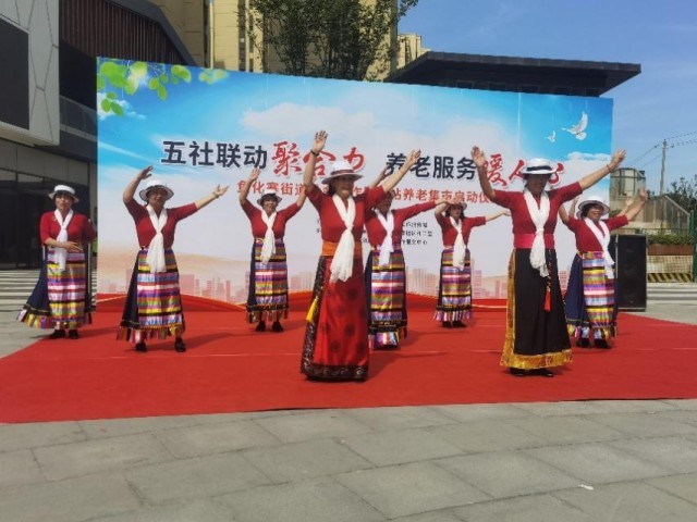 除此之外,“养老集市”现场还开展了丰富多样的文化娱乐活动,通过社区群众喜闻乐见的舞蹈、戏曲等多种形式,丰富老年人的文娱生活,活动当日参与社区群众热情高涨,现场气氛热烈,工作人员和志愿者的细心服务受到了社区居民的一致好评。
