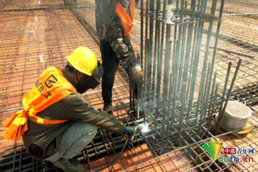 建设者在室外工作。张海睿 摄