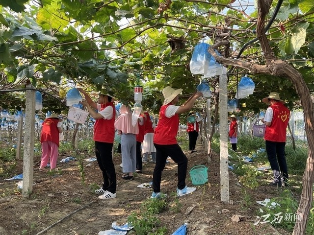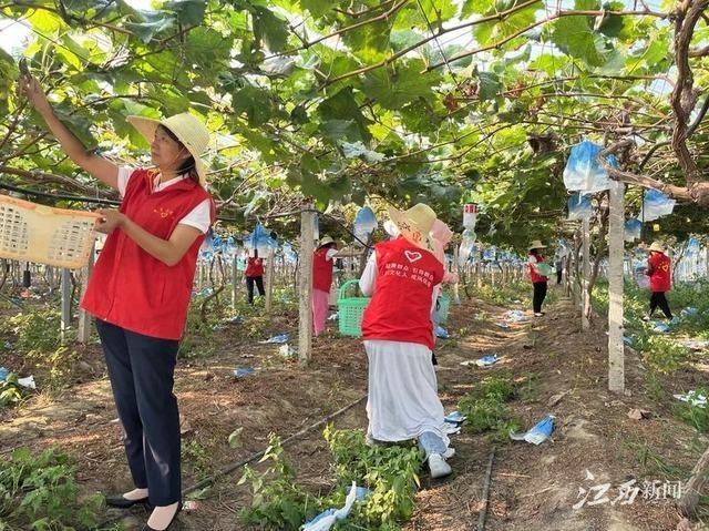 江西新闻客户端(陈骏超)为解决种植户人手不足、采摘不及时的问题,近日,南昌市安义县人力资源和社会保障局就业创业服务中心组织党员干部职工组成服务队,帮助农户抢收葡萄,拓展销路,增加收入。
