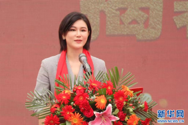 北京龙源传统文化交流促进中心执行理事长荻娜在活动上致辞。新华网发