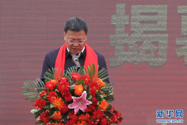 江西省龙南经开区党工委副书记、龙南市委副书记、市长彭江闵在活动中致辞。新华网发